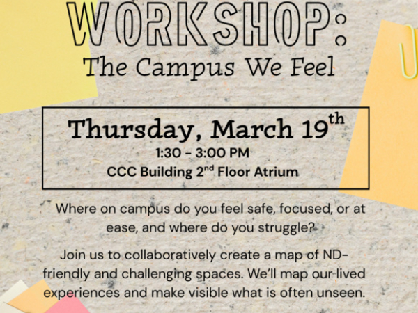 Join us and the Nancy M. Wells Lab to collaboratively create a map of ND-friendly and challenging spaces. we’ll map our lived experiences and make visible what is often unseen.