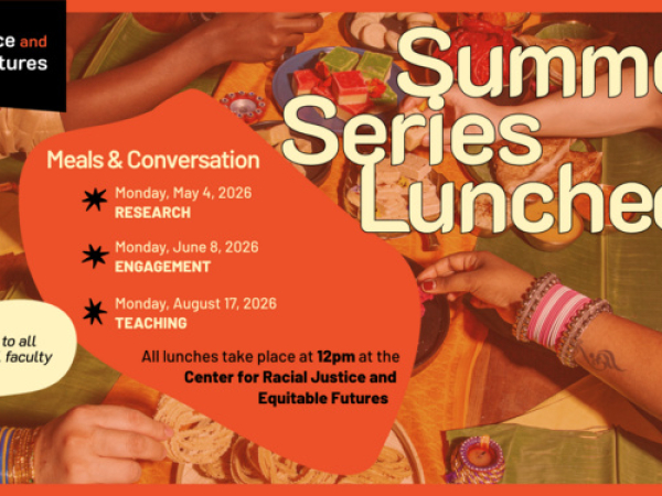 Join the Center for Racial Justice and Equitable Futures for shared meals and themed conversations on research, engagement, and teaching.