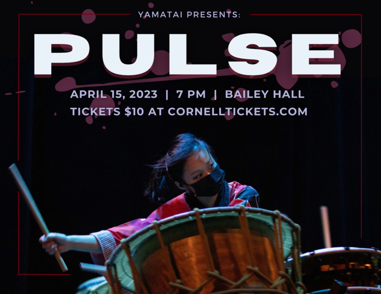 PULSE is a high energy and immersive night of Japanese taiko drumming where the hard work of all Yamatai members come together for the Ithaca community to enjoy. We are so excited to have members from the professional taiko group Bonten play with us this year. It is going to be a show you will not want to miss!